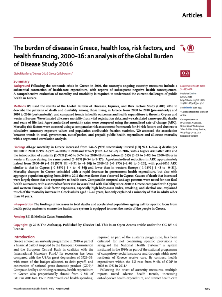 Citation: Lancet Public Health. 2018 Aug;3(8):e395-e406. Authors: Global Burden of Disease 2016 Greece Collaborators Abstract: Following the economic crisis in Greece in 2010, the country’s ongoing austerity measures include a substantial…