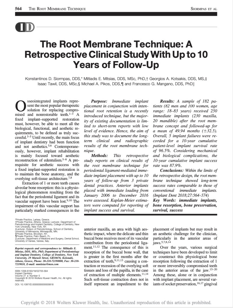 Citation: Implant Dent. 2018 Oct;27(5):564-574. Authors: Konstantinos D Siormpas, Miltiadis E Mitsias, Georgios A Kotsakis, Isaac Tawil, Michael A Pikos, Francesco G Mangano Abstract: Immediate implant placement in conjunction with intentional…