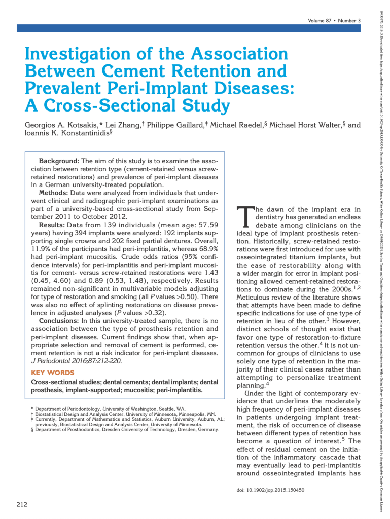 Citation: J Periodontol. 2016 Mar;87(3):212-20. Authors: Georgios A Kotsakis, Lei Zhang, Philippe Gaillard, Michael Raedel, Michael Horst Walter, Ioannis K Konstantinidis Abstract: The aim of this study is to examine the…