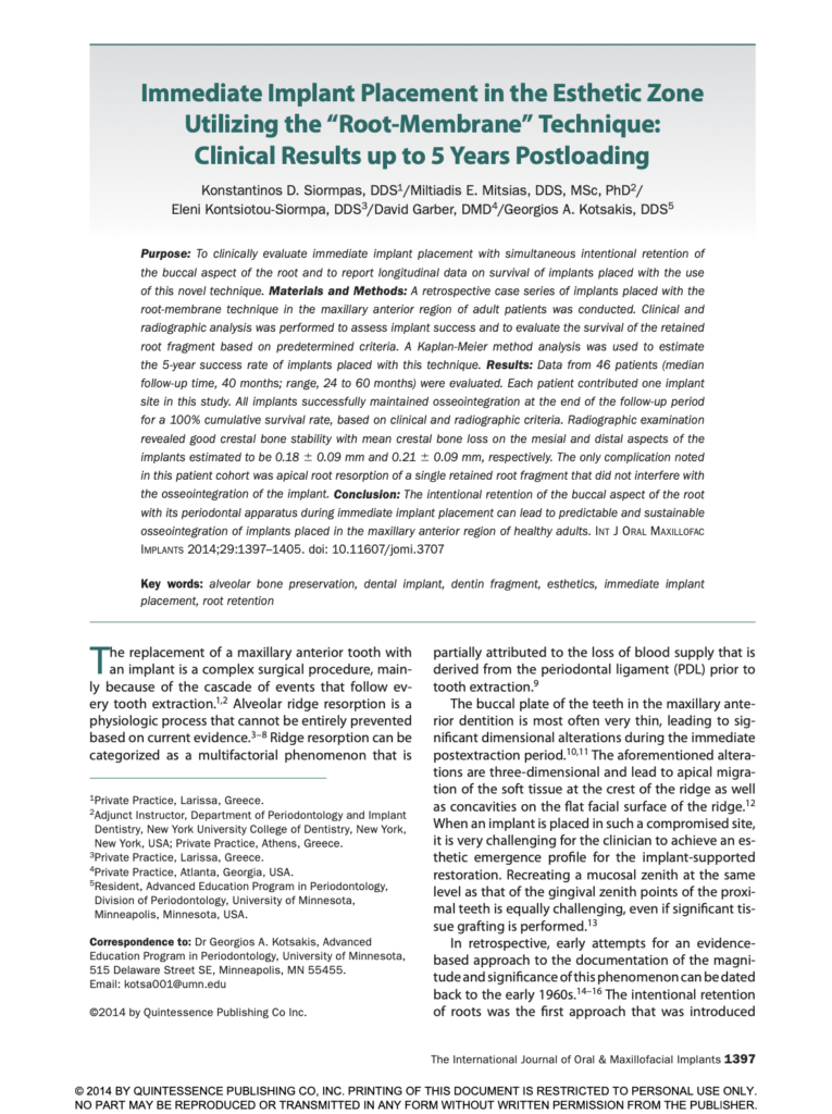 Konstantinos D Siormpas*, Miltiadis E Mitsias*, Eleni Kontsiotou-Siormpa*, David Garber*, Georgios A Kotsakis* Purpose: To clinically evaluate immediate implant placement with simultaneous intentional retention of the buccal aspect of the root and to report…