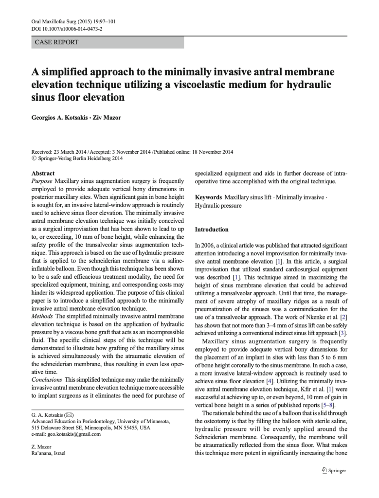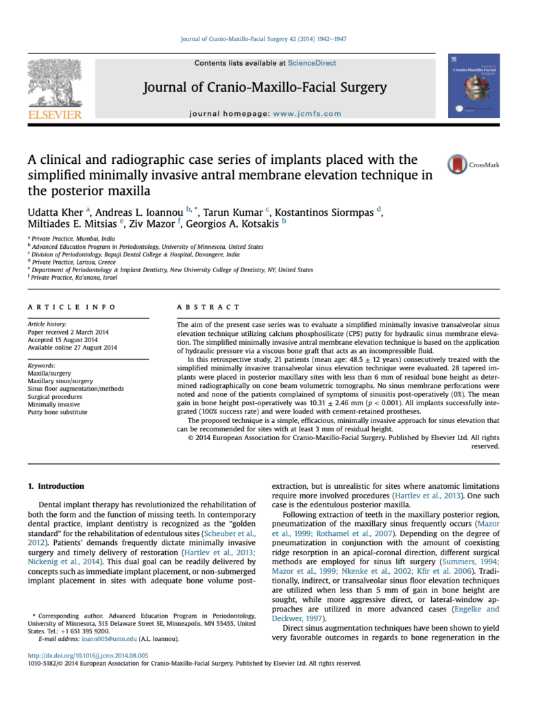 Udatta Kher1, Andreas L. Ioannou2, Tarun Kumar3, Kostantinos Siormpas4, Miltiades E. Mitsias5, Ziv Mazor6, Georgios A. Kotsakis7 The aim of the present case series was to evaluate a simplified minimally…