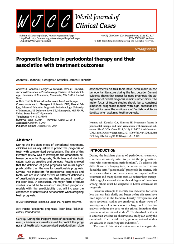 Citation: World J Clin Cases. 2014 Dec 16;2(12):822-7. Authors: Andreas L Ioannou, Georgios A Kotsakis, James E Hinrichs Abstract: During the incipient steps of periodontal treatment, clinicians are usually asked to predict…