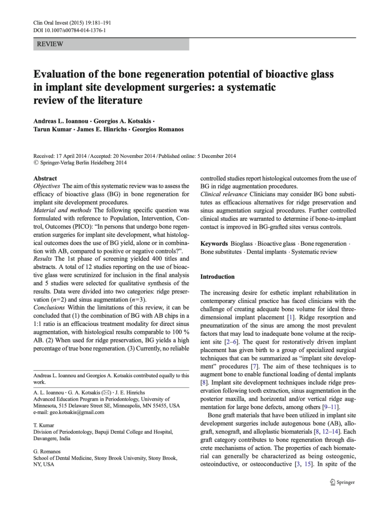Citation: Clin Oral Investig. 2015 Mar;19(2):181-91. Authors: Andreas L. Ioannou, Georgios A. Kotsakis, Tarun Kumar, James E. Hinrichs, Georgios Romanos Abstract: The aim of this systematic review was to assess the efficacy…