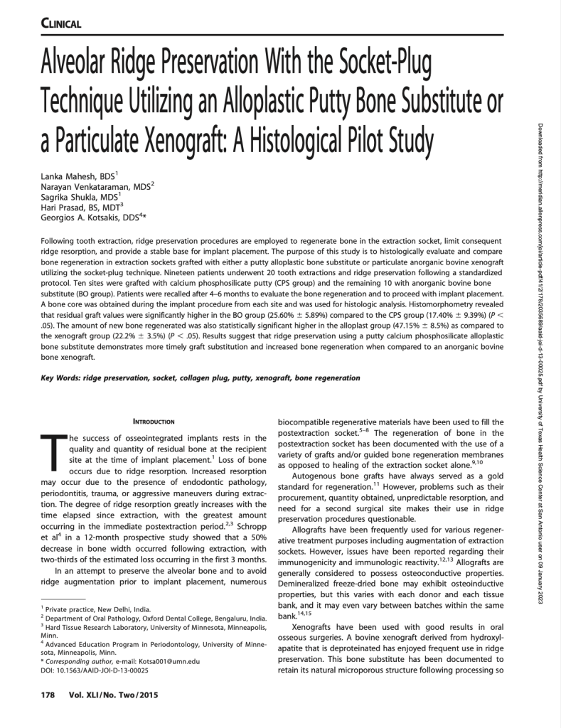 Citation: J Oral Implantol. 2015 Apr;41(2):178-83. Authors: Lanka Mahesh, Narayan Venkataraman, Sagrika Shukla, Hari Prasad, Georgios A. Kotsakis Abstract: Following tooth extraction, ridge preservation procedures are employed to regenerate bone in…