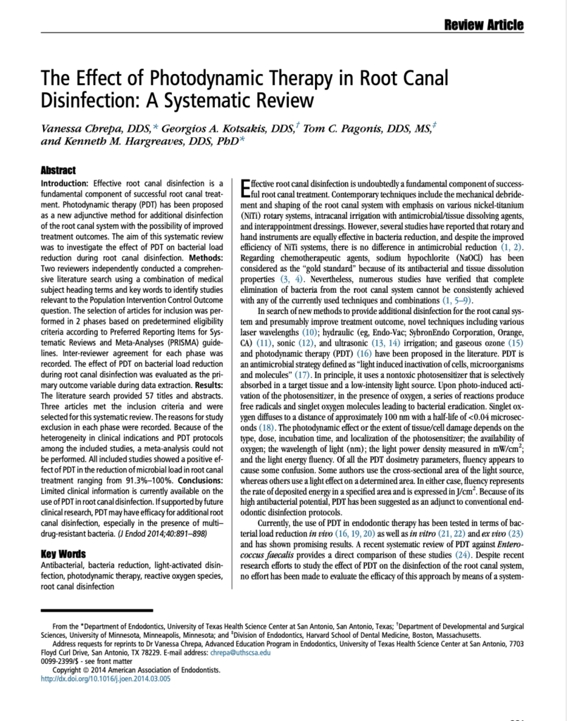Introduction: Effective root canal disinfection is a fundamental component of successful root canal treatment. Photodynamic therapy (PDT) has been proposed as a new adjunctive method for additional disinfection of the…