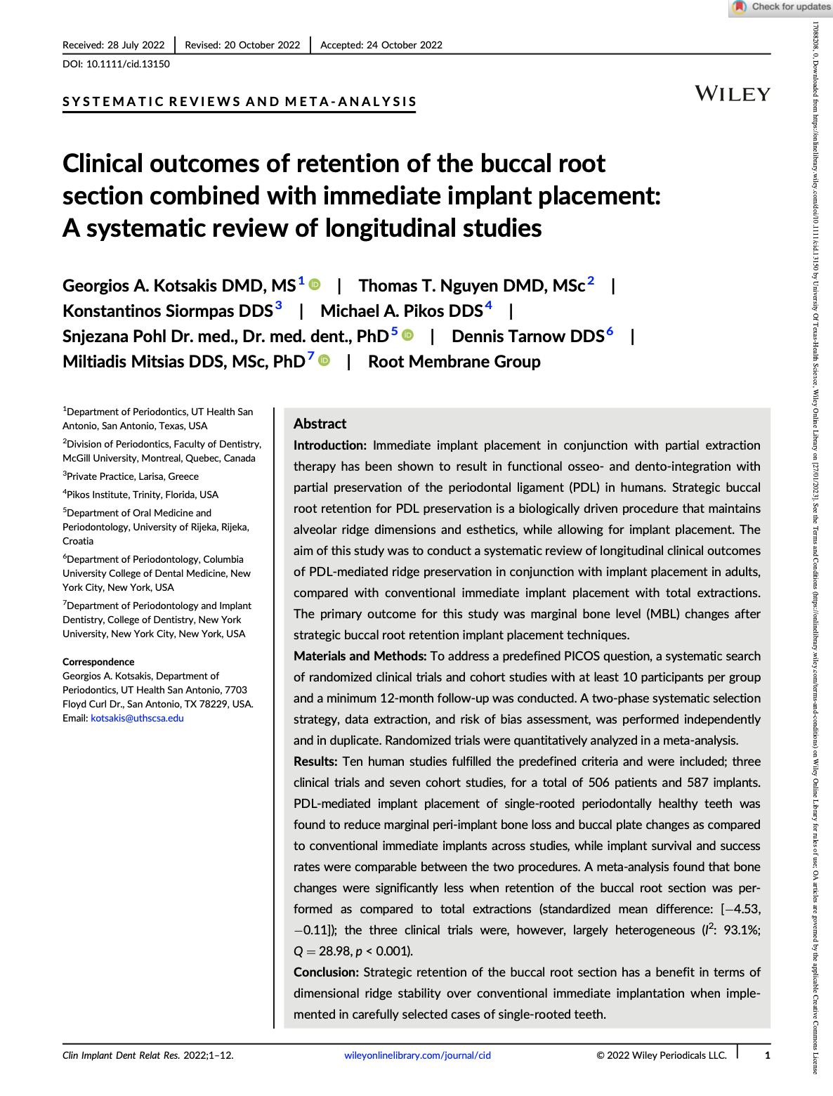 Clinical outcomes of retention of the buccal root section combined with immediate implant placement: A systematic review of longitudinal studies