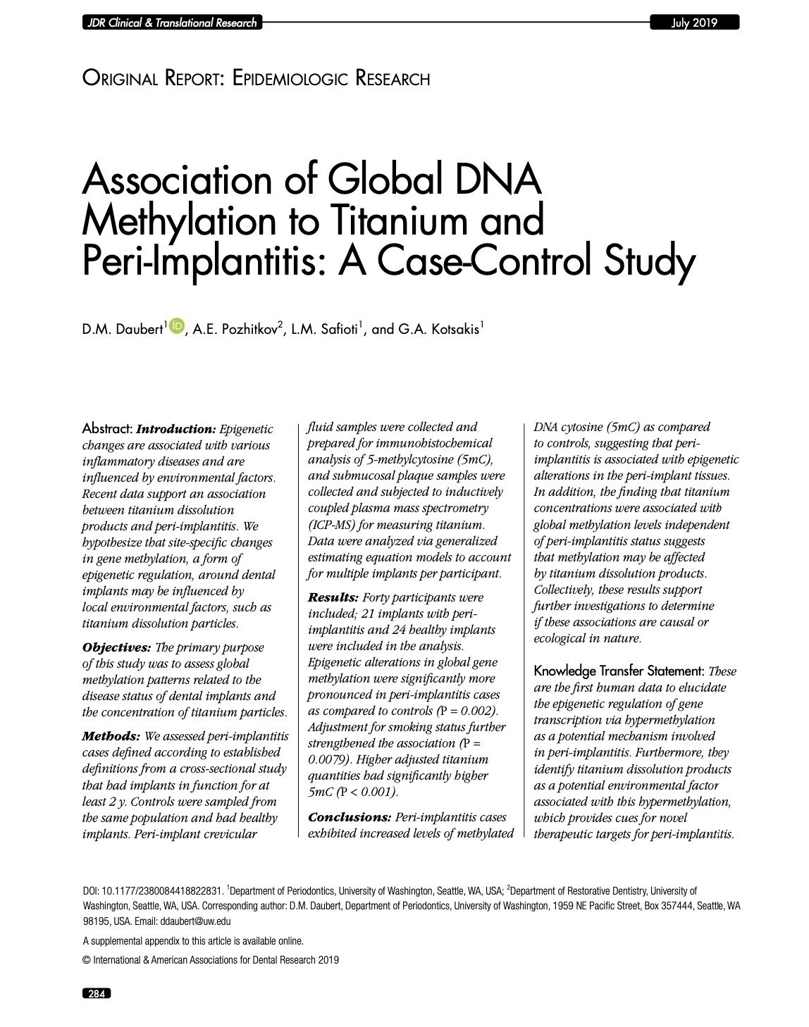Association of Global DNA Methylation to Titanium and Peri-Implantitis: A Case-Control Study