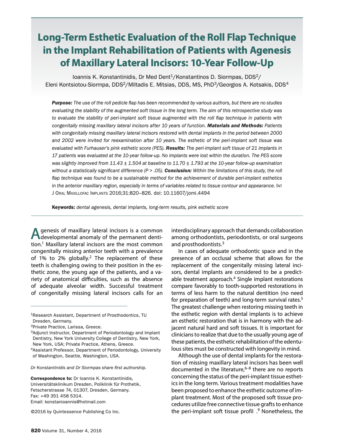 Long-Term Esthetic Evaluation of the Roll Flap Technique in the Implant Rehabilitation of Patients with Agenesis of Maxillary Lateral Incisors: 10-Year Follow-Up