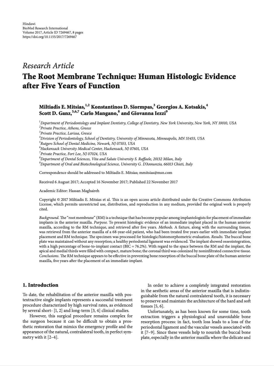The Root Membrane Technique: Human Histologic Evidence after Five Years of Function