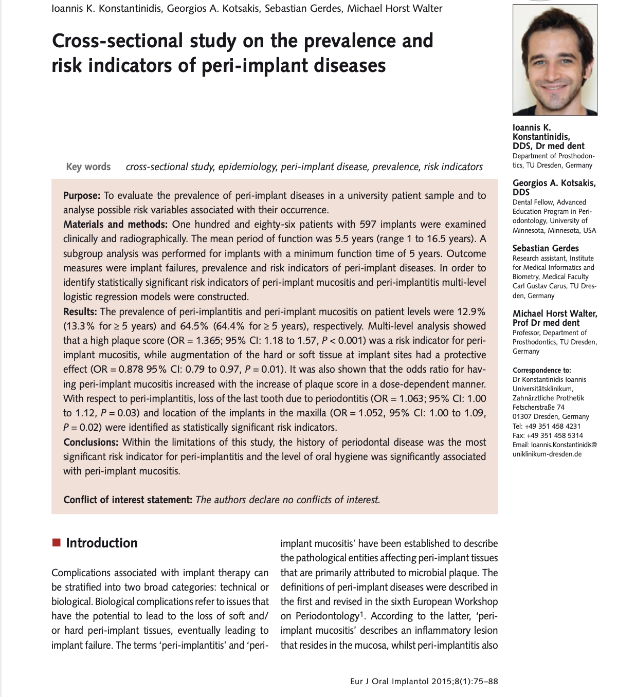 Cross-sectional study on the prevalence and risk indicators of peri-implant diseases
