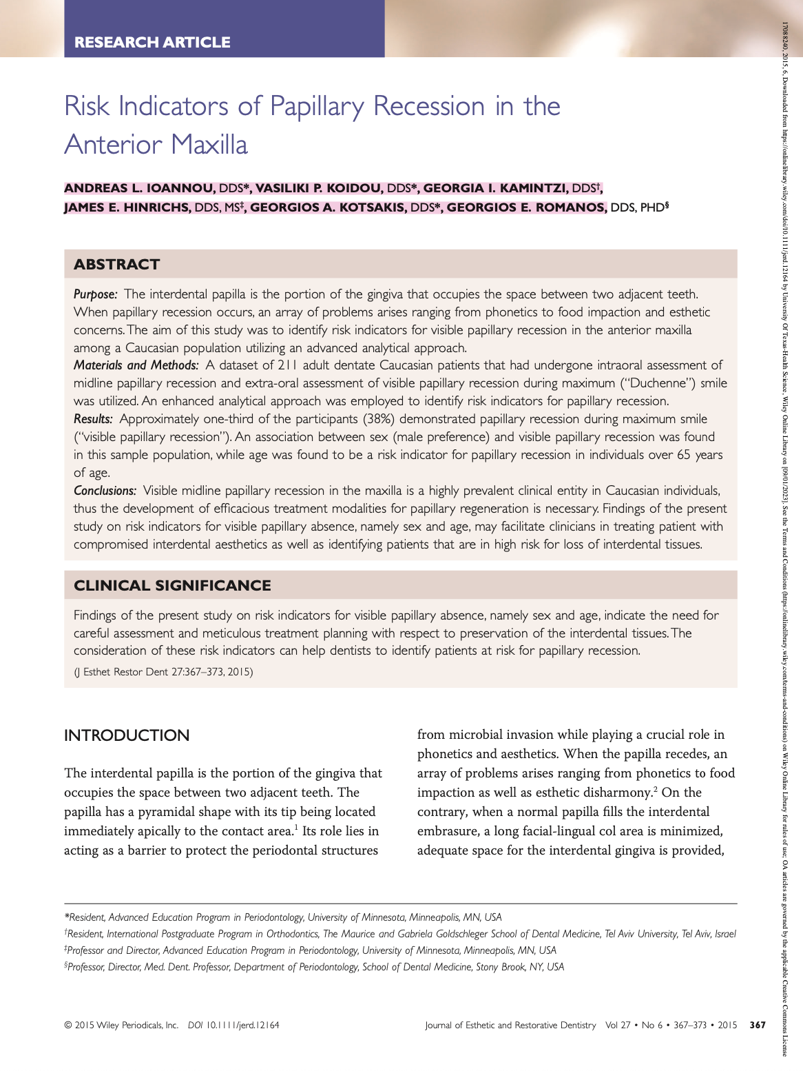Risk Indicators of Papillary Recession in the Anterior Maxilla