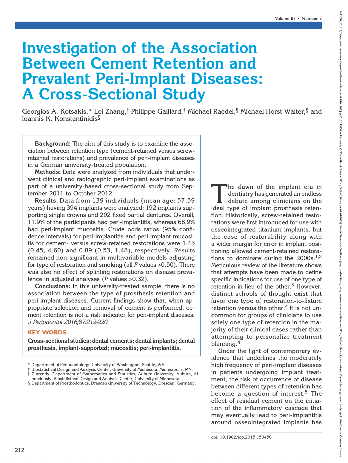 Investigation of the Association Between Cement Retention and Prevalent Peri-Implant Diseases: A Cross-Sectional Study